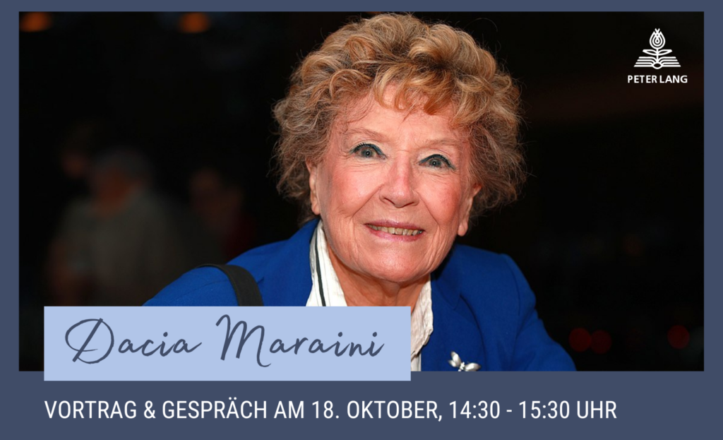 Dacia Maraini ist die öffentlich nachhaltig engagierteste sowie bekannteste Schriftstellerin der zeitgenössischen italienischen Literatur. Zur Frankfurter Buchmesse findet am 18.10.2024 ein Gespräch zwischen ihr und der Wissenschaftlerin Dagmar Reichardt statt. Dabei dreht sich alles um zentrale Fragen der Übersetzung und Geschlechterthematik. Der Titel „Land der Frauen“ greift dabei den Namen der feministischen NGO Terre des Femmes auf und setzt ihn mit einem offenen Begriff von „Übersetzung“ in Beziehung. Die Diskussion basiert auf dem bald erscheinenden Werk Le tante traduzioni dell’opera di Dacia Maraini (dt.: „Die vielen Übersetzungen des Werks von Dacia Maraini“, 2024).